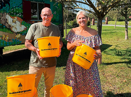 Auf der Agra in Leipzig, der wichtigsten Branchenplattform der Agrarwirtschaft in Ost- und Mitteldeutschland, sammeln die Versicherungsagenturen der Mecklenburgischen aus Leipzig, Erfurt und Dresden regelmäßig Spenden für gemeinnützige Projekte. Am Messestand können Besucher gegen eine Spende einen der beliebten gelben Futtereimer erwerben. Der Erlös kommt unter anderem der Elternhilfe für krebskranke Kinder Leipzig, der Rettungshundestaffel Sachsen-Ost, dem Kinderhospiz Mitteldeutschland, dem Kinder- und Jugendbauernhof Nickern oder dem Kinderhospiz Leipzig zugute.
